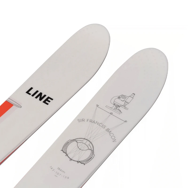 The LINE Sir Francis Bacon has been redesigned for the winter 2021 but retains its lightweight and playful construction that’s made it so popular for so long, a new feature for this year is the convex base tech on the tip and tail which allows you to drift and butter through pow without sacrificing edge grip on hard pack.