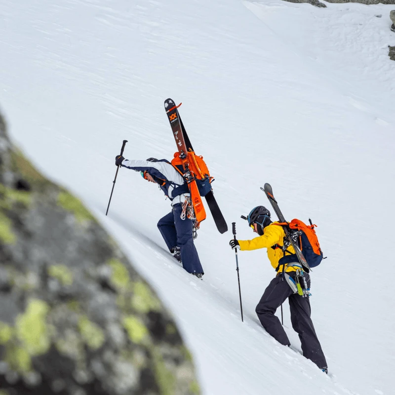 The legendary Kingpin combines the lightweight ISI pin toe piece with an alpine heel piece including 0°/7°/13° climbing aid. This makes it very easy to walk on any terrain and ensures great descents with outstanding performance and top-level release functionality. The binding is therefore perfect for ambitious backcountry and freeride touring enthusiasts. A very stiff, carbon-reinforced front with an ISI toe piece makes the binding easier to step into, as a wide footprint with integrated stop automatically positions and aligns your boot. Kinematically optimised pin levers then allow the pins to snap shut with just a gentle push. The wide hole pattern and XXL power transmitters deliver the ultimate in direct power transmission for the utmost control and fun on the descent.